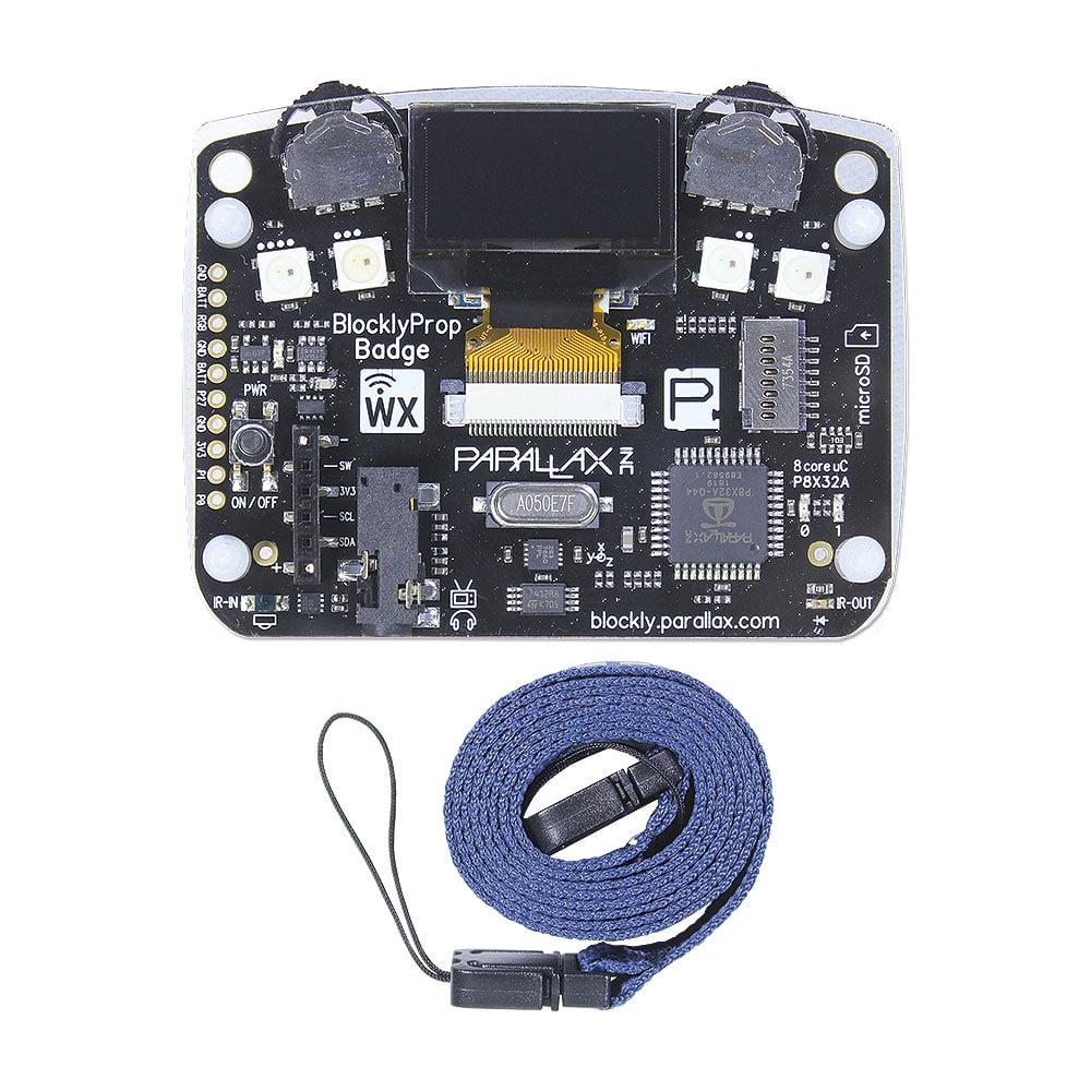 - BlocklyProp visual programming language simplifies use of Badge WX devices